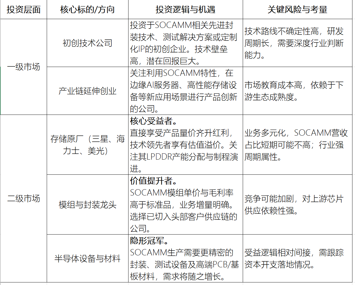 站在当下,SOCAMM相关的机会可以从三个维度梳理: